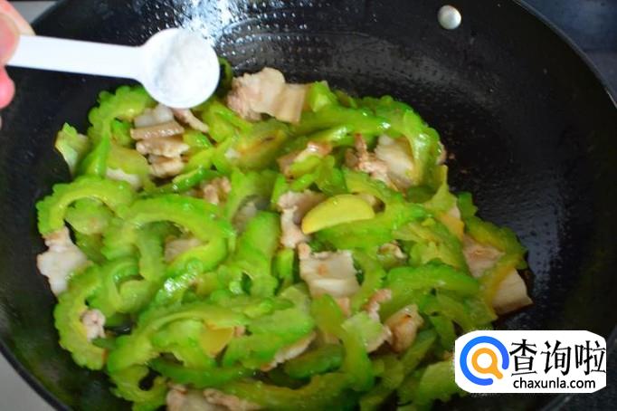 翻炒片刻,待锅底出现少许汤汁,说明苦瓜也熟了,尝一下咸淡,调整味道后就可以出锅啦。