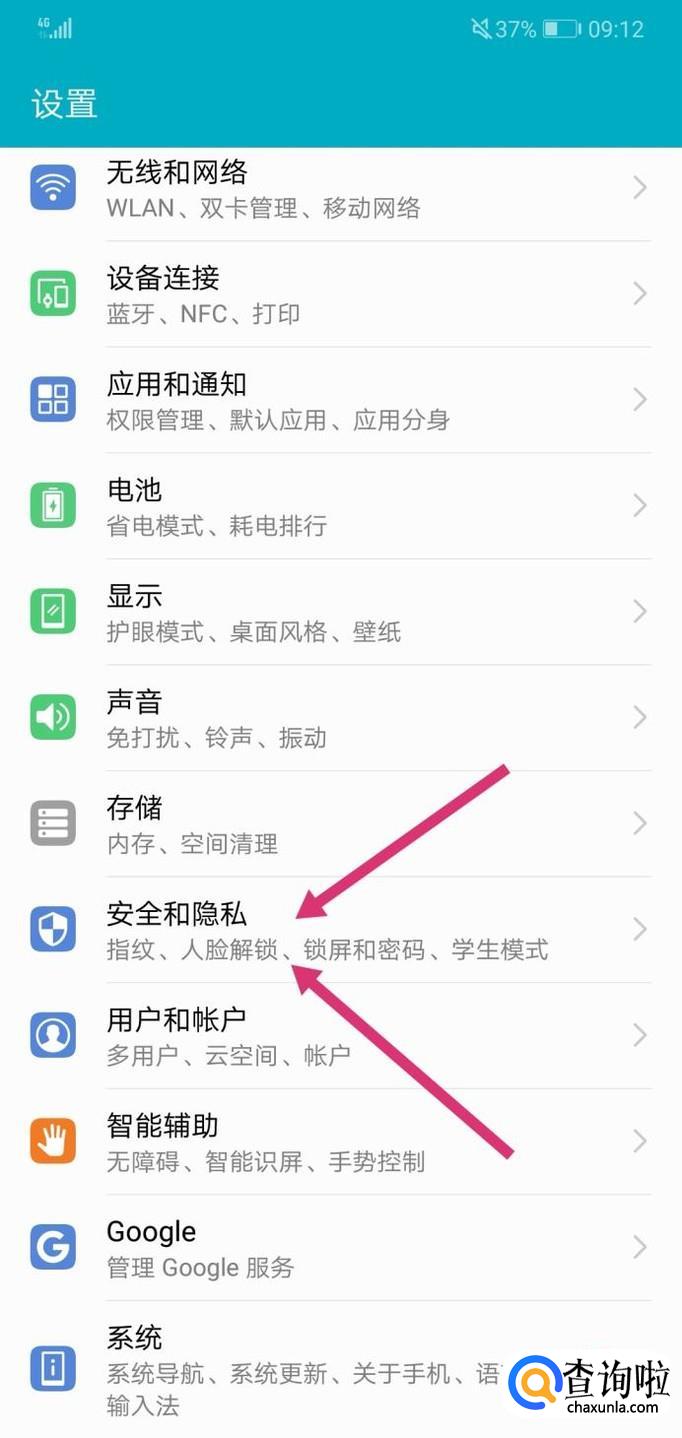 然后,进入后,你需要找到包含有锁屏密码设置等选项的功能,比如“安全个隐私”这个功能里面就有。