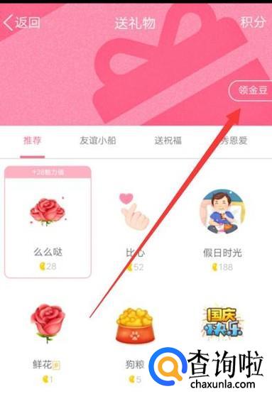 进入之后,点击“领金豆”,进入下一页面。