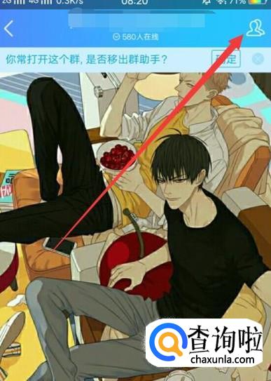 进入之后,随便选择一个群聊进入里面,点击图示位置。