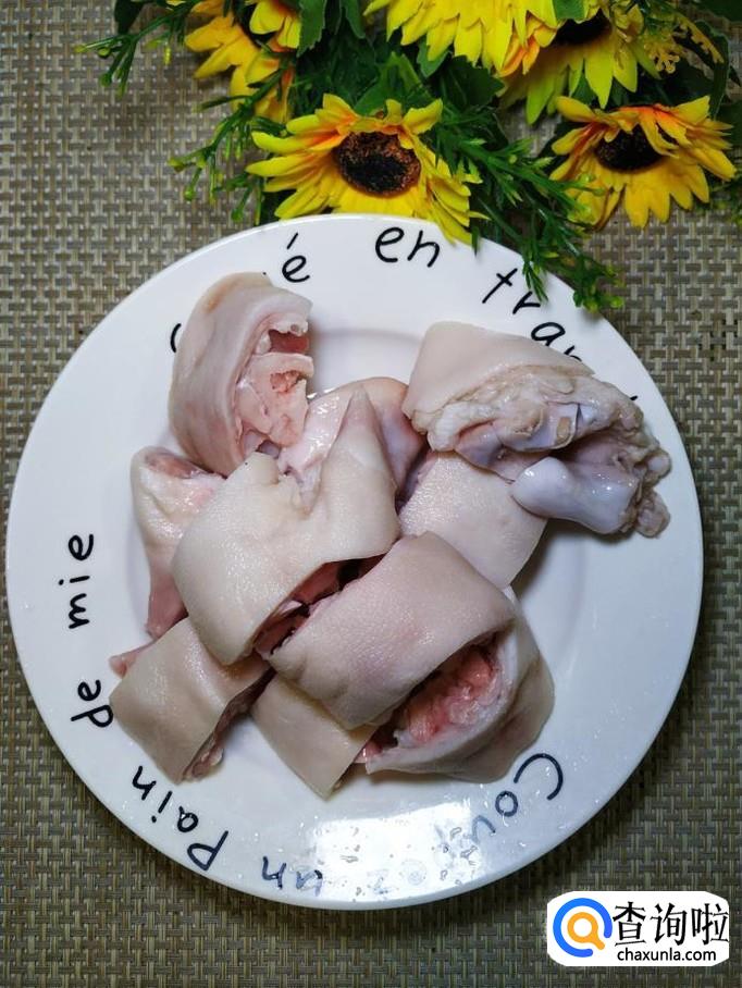 准备适量猪蹄子,用清水洗净,锅中烧开水,水开后,将猪蹄子倒入锅中,煮五分钟左右,可以加入适量料酒同煮,这样可以有效去腥。