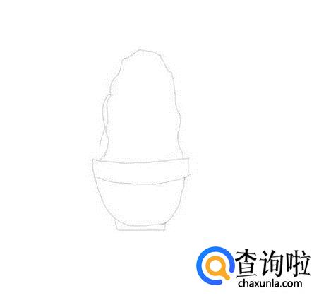 在小花盆的上面我们画出多肉植物的身体轮廓,如图所示: