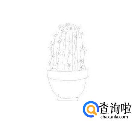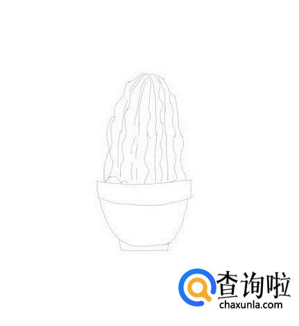 在多肉植物上面我们画出上面的竖线作为纹理线,如图所示: