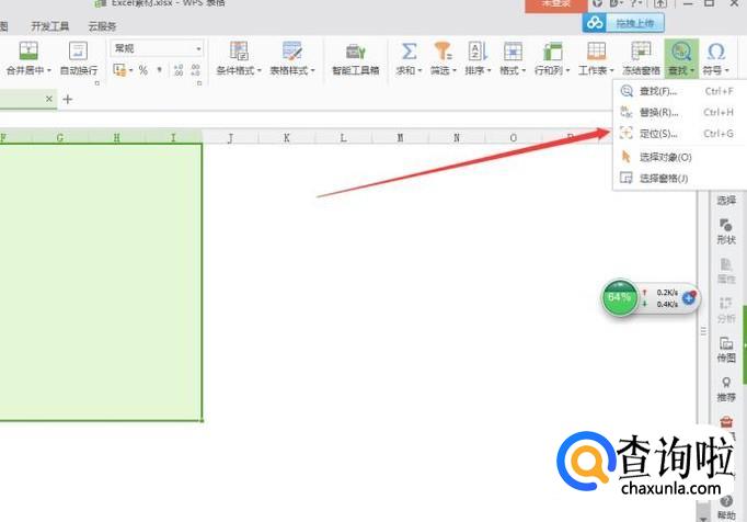 选择“空值”后再点击下方的“定位”,然后就会出现表格中是空值的所有位置,用不同的颜色表示的,如下图使用浅绿色表示出来的