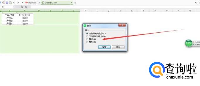 然后选择“整行”,然后完成了快速批量删除表格空行