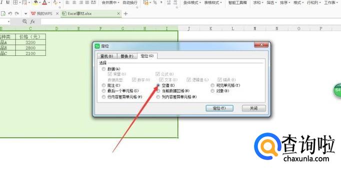 点击“定位”后会出现一个新的页面,在页面中找到“空值”如下图所示