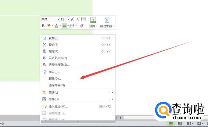 然后点击鼠标右键,然后选择“删除”如下图所示