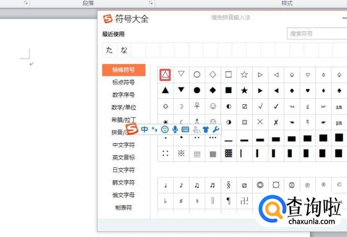 弹出的界面,我们就可以看到很多特殊符号了,我们点击第一个特殊符号;