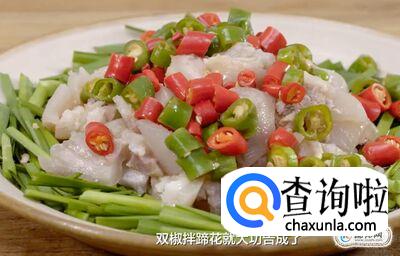 将猪蹄肉放入韭菜打底的盘里,浇上凉拌汁和少许花椒油即可。