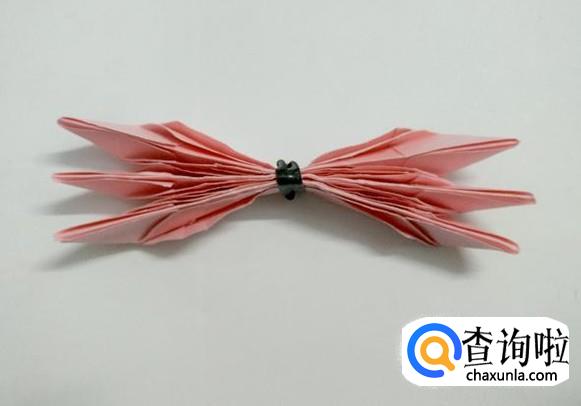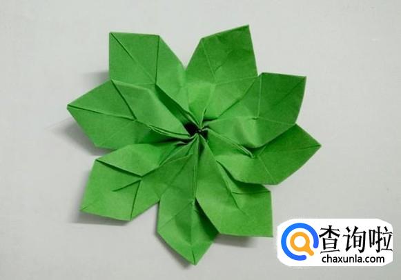 把粉色的花朵放到绿色的上面,荷花就折好了。(也可以用胶水把粉色花朵和绿色叶子粘在一起)