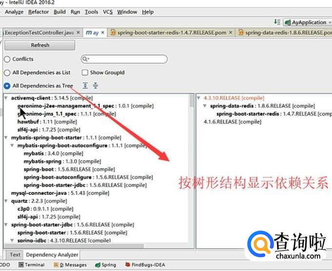 最后点击All Dependencies as Tree选项,所有的依赖项就会以树形的结构展现,依赖关系显示的会更清晰,如下图所示