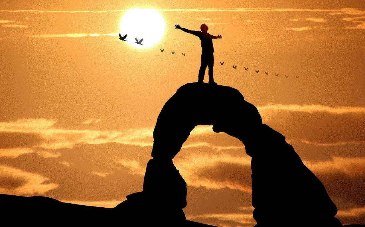 5、站在山顶和站在山脚下的两人,虽然地位不同,但在对方眼里,同样的渺小。