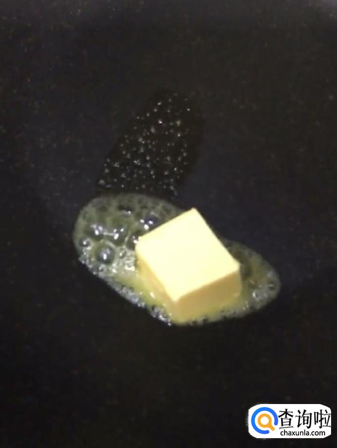 首先我们将20g黄油放入锅中,开小火,炒至融化
