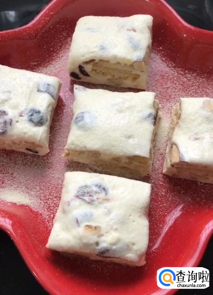 最后筛上一层奶粉,好吃的雪花酥就制作完成啦!