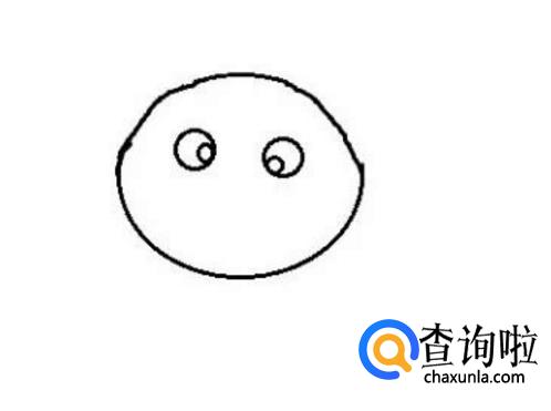 在椭圆里画两个大小相同的小圆圈用来当小猪的眼睛。