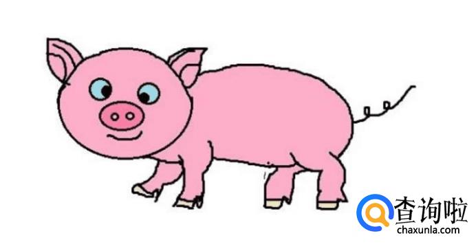最后我们用粉色的水彩笔或者蜡笔把小猪的身体涂成粉红色,再用蓝色的水彩笔或者蜡笔给小猪的眼睛添上颜色,使小猪看起来更可爱生动,这样一个小猪就完成啦。