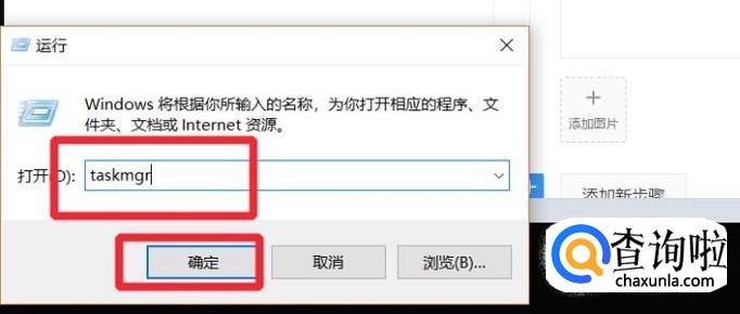 在弹出的运行窗口中输入taskmgr,然后enter回车确认或者鼠标点击确认,便能够打开任务管理器了。