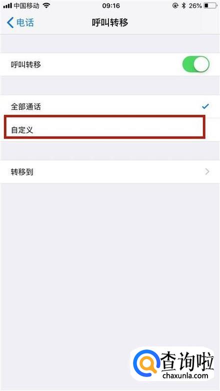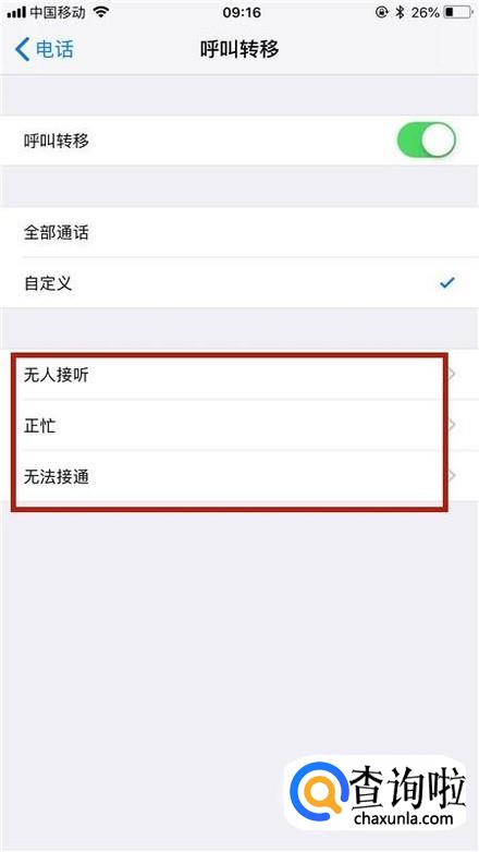 最后选择呼叫转移的条件就可以了。
