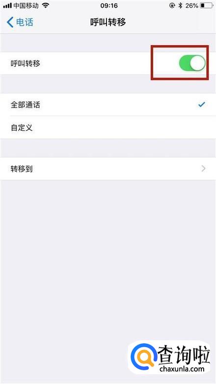 然后点击开启呼叫转移开关,如下图所示。