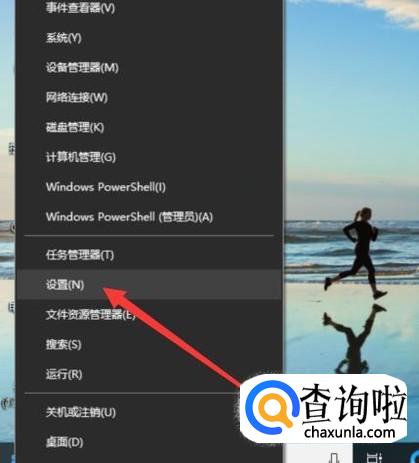打开电脑,右击Windows按键,选择“设置”,如图所示。
