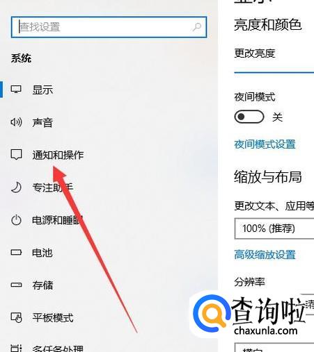 进入之后,点击“通知和操作”,进入下一页面,如图所示。