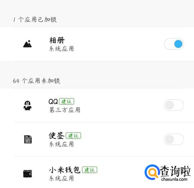 在这里,可以给一些软件加密,相册、微信、QQ都可以。