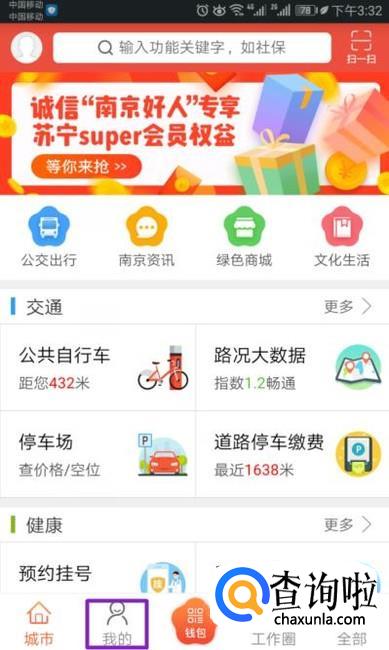 进入我的南京之后,我们点击我的;