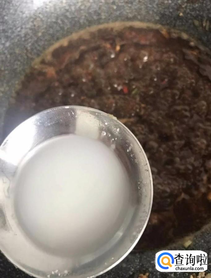 接着我们再把尖椒末与小米辣末放入锅中,用水淀粉勾芡一下,用大火烧开,熬至汤汁粘稠