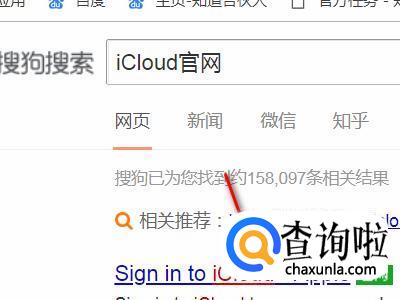 首先在搜狗高速浏览器的搜索栏中输入iCloud官网并点击确定。