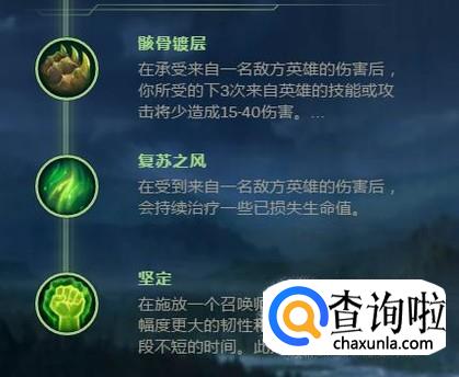 剩下的选择骸骨镀层以及复苏之风和坚定,增加自身的坦度以及回血能力
