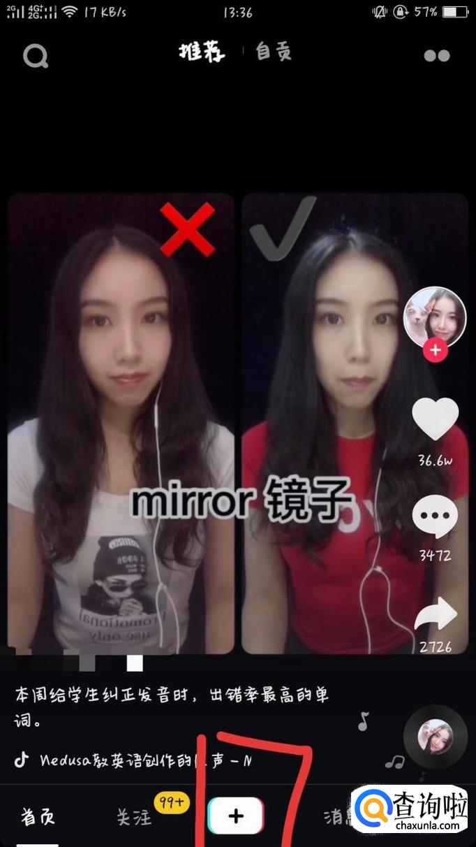 首先进入抖音短视频APP,点击主页下方中间的加号选项,开始拍摄视频。