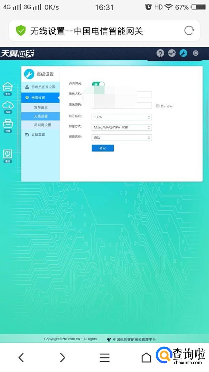 进入后,找到无线设置。可以看到wifi名称和密码等相关信息。