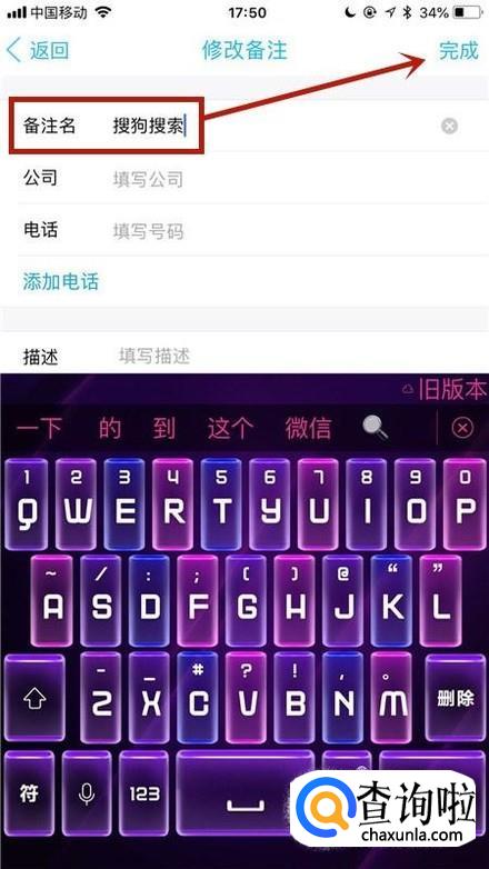 最后填写你想要的备注名,并点击完成就可以了。你学会了吗?赶快动手试一试吧。