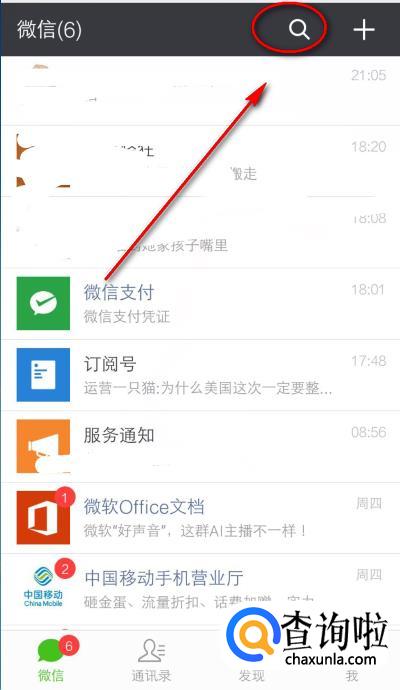 打开微信之后,点击右上角的“搜索”图标。