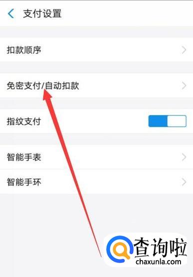 进入之后,即可看到“免密支付/自动扣款”,点击并进入,如图所示。