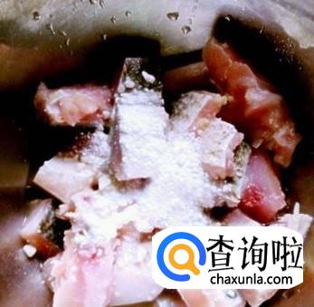 将洗干净的鱼砍成小块,在其表面抹上盐,生淀粉,静置入味。