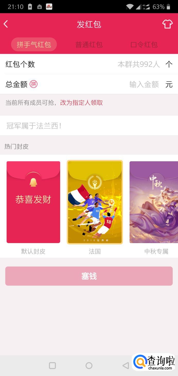 这里你可以选择想要发的红包皮肤和名字样式,选一个你喜欢的就可以开始设置了。