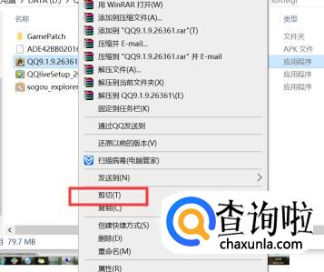 接着,我们选中下载完成的软件,点击鼠标右键在弹出来的选项框中选择“剪切”。