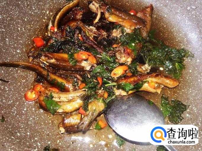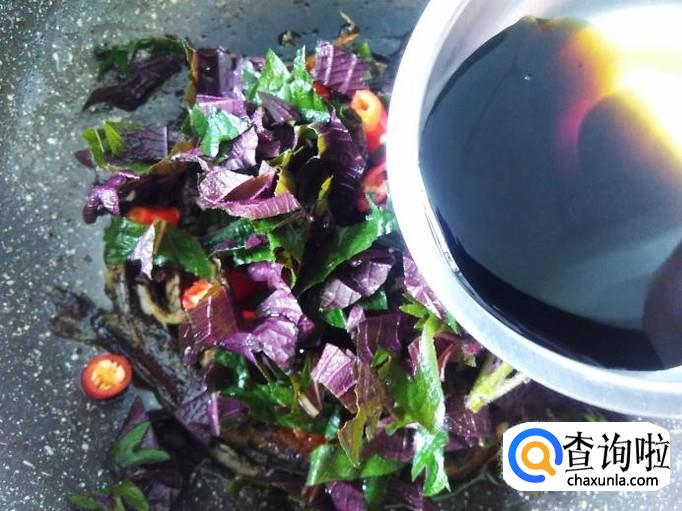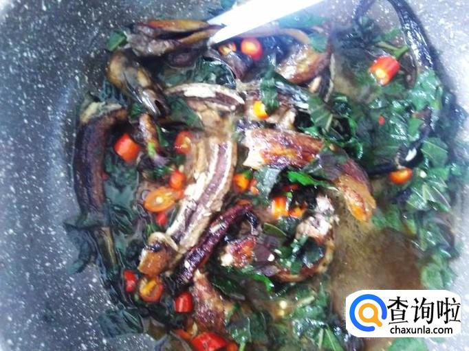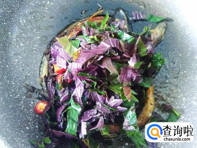 再煎2分钟左右放小米辣、姜丝、紫苏进去。