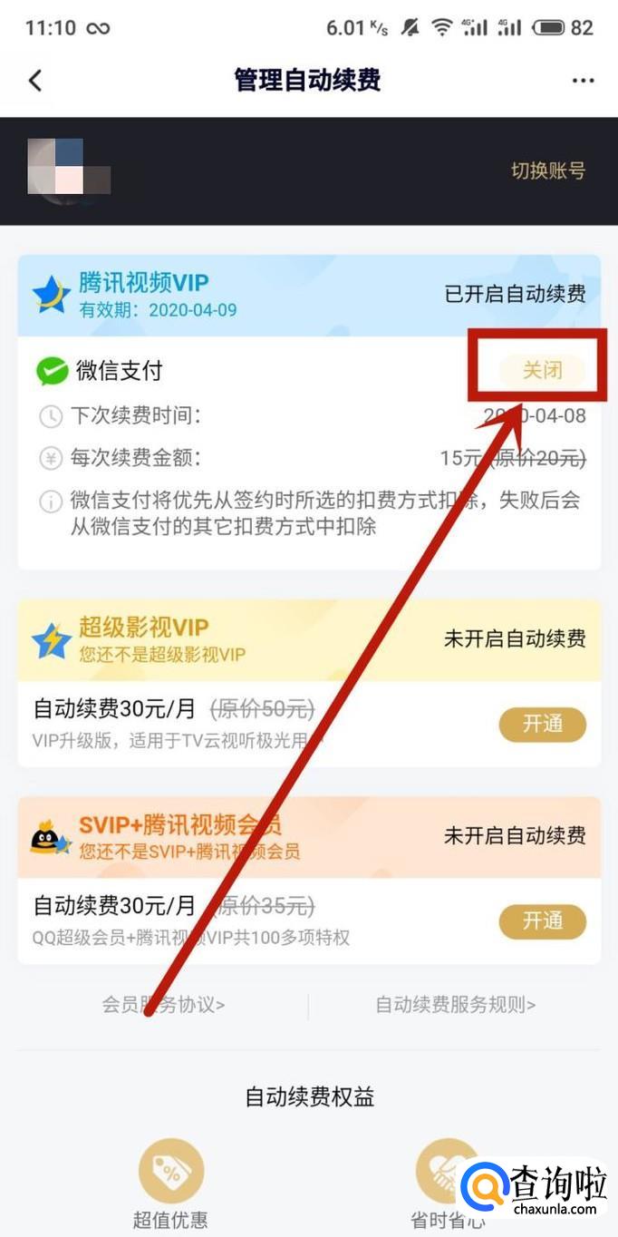 腾讯视频取消自动续费需要在个人中心页面选择“我的VIP会员”,点击“管理续费”,再点击“关闭”,然后在出现的弹窗内点击“狠心关闭”即可。