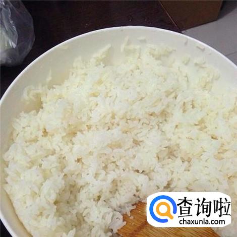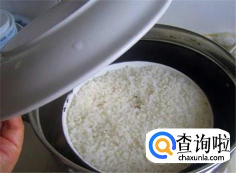 大米放进盆里或者碗里,加上热水,水的多少和用电饭煲做大米饭一样。