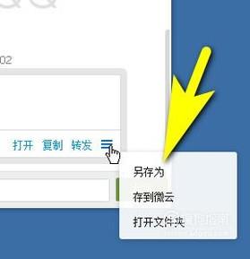 再转到电脑上,打开QQ,再点开我的android手机界面,即可以看到从手机上发送过来的文件。然后,鼠标放在三线按钮这里,弹出菜单再点:另存为。把该文件保存在电脑上。