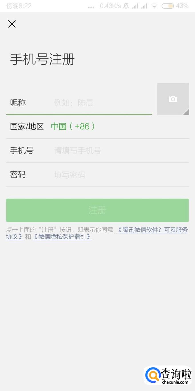 首先用一个手机号注册微信账号,然后登录。