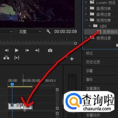 鼠标点住“亮度曲线”,拖向序列面板中的视频,赋予视频该效果。