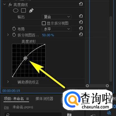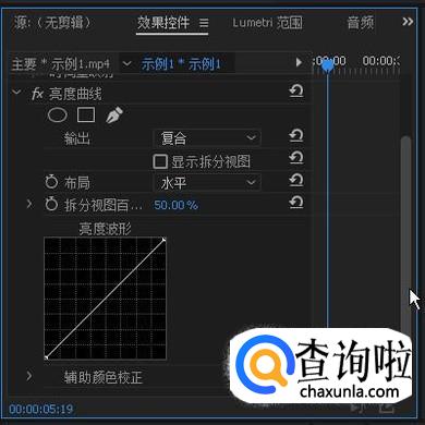 我们再看效果控件面板这里,“亮度曲线"显示其中。