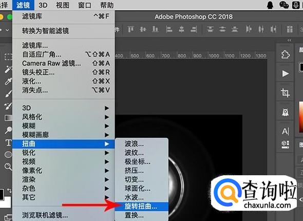 添加完成之后对形状进行扭曲,选择“滤镜-扭曲-旋转扭曲”