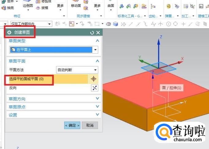 弹出一个“创建草图”对话框,