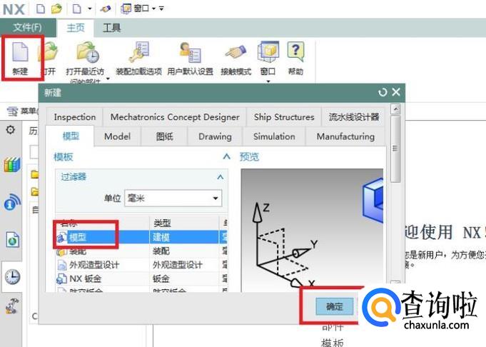 然后在弹出的“新建”对话框中选择“模型”,