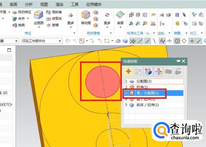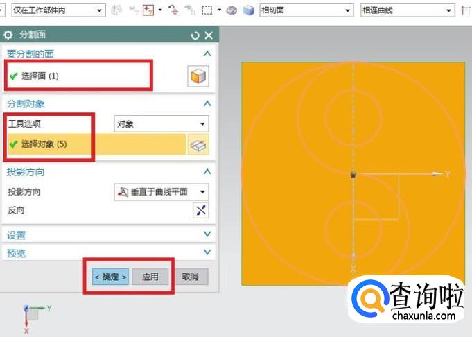 要分割的面一栏选择长方体上表面(也就是太极图轮廓线所在的平面)