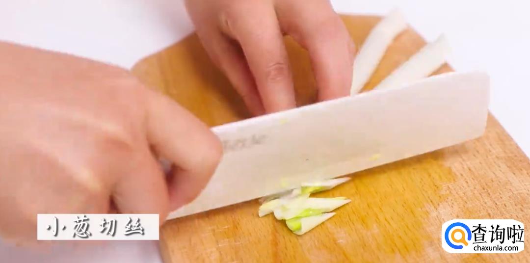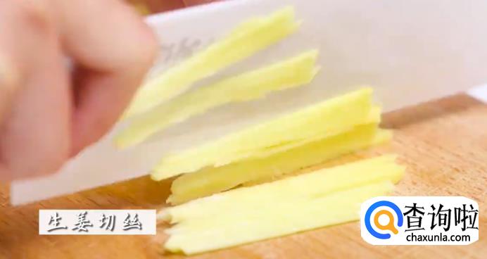 首先,把生姜、小葱都切成丝状。